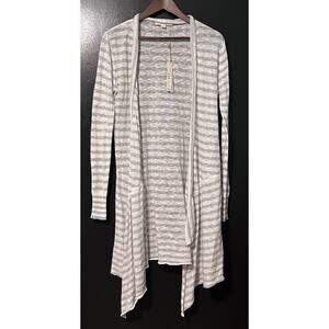 NWT Lovestitch Women's Open Front Striped Cardigan Sweater Size M Gray White