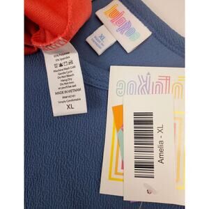 NWT LuLaRoe Amelia XL Dress Blue Coral Colorblock Zipper Pockets Womens Size