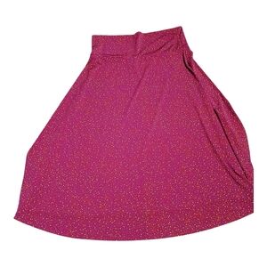 Add a playful touch to your wardrobe with this LuLaRoe Azure skirt! Featuring a maroon base with tiny yellow polka dots, this skirt offers a classic A-line silhouette with a comfortable fit and flattering midi length. Perfect for casual outings, work, or dressing up for an evening out.