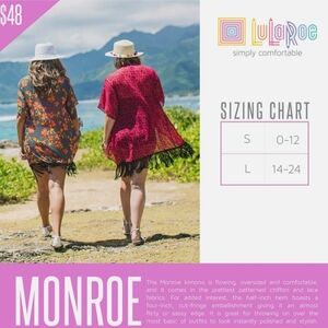 New With Tags LuLaRoe Monroe kimono cover up in olive green and black with fringe trim.