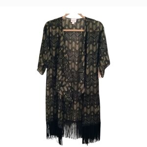 NWT LuLaRoe Fringe Olive Green Black Kimono Duster Size Small Boho Festival