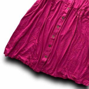 The Heidi is a baby doll dress with a V-neck and hits above the knee. She has functioning front button detail with antique brass buttons, a flutter sleeve, and elastic waist seam, and side seam pocket. She has a relaxed fit.