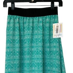 NWT LuLaRoe Lola Skirt in pale green and white boho style Print. The Lola skirt, LuLaRoe’s midi skirt, falls fashionably below the knee. This lace or chiffon skirt features a lining that is four inches shorter than the skirt itself. Wide elastic waistband with matching green lining.