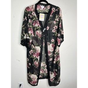 NWT LuLaRoe Floral Sheer Cover Up Lace Crochet Kimono Midi Open Front Oversize M.