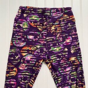 NWT LuLaRoe OS leggings Halloween purple pink striped skulls Whimsygoth Witchy