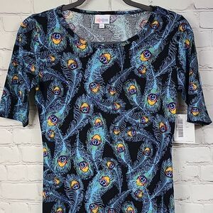 NWT LuLaRoe XS 2/4 Julia Midi Dress Peacock Feather Black Fitted Sheath Bodycon