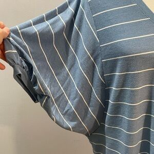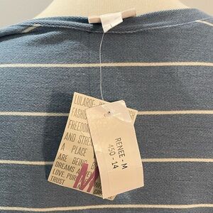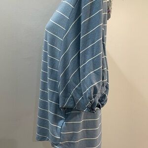Adorable balloon sleeves on this loose fitting, v-neck top. New with tags. Size medium fits 10/12.