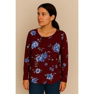 NWT LULAROE SMALLFLORAL BURGUNDY LYNNAE SHIRT TOP BLOUSE