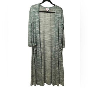 NWT LuLaRoe, open front cardigan. Sarah is a cropped long sleeve with mid calf length. Two front pockets. Versatile and comfortable, the Sarah is a staple Cardigan. Green and white, size small