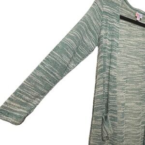 NWT LuLaRoe “Sarah” open front cardigan, green & white, size small
