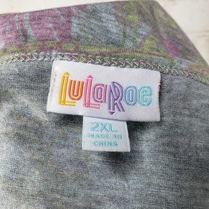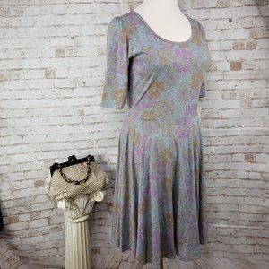 NWT LuLaRoe Size 2XL Heather Gray Pink Floral Nicole Fit & Flare Dress Stretch