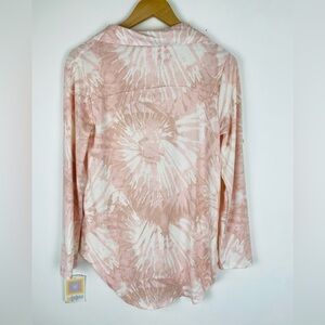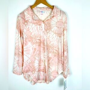 New with tag LuLaRoe Valentina Button Up Shirt, Long Sleeve Pink Tie Dye Print.