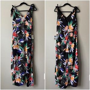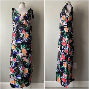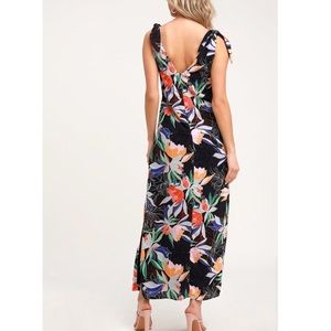 NWT LuLu's Black Tropical Floral Vacation Tie Sleeves A Line Maxi Dress Womens S