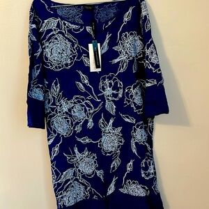 NWT Luca Vanucci Blue with white printed flowers Linen tunic style dress XL