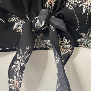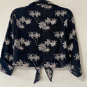 NWT Lucca Crop Tie Front Top ¾ Sleeves Black White Medium Palm Tree Paradise