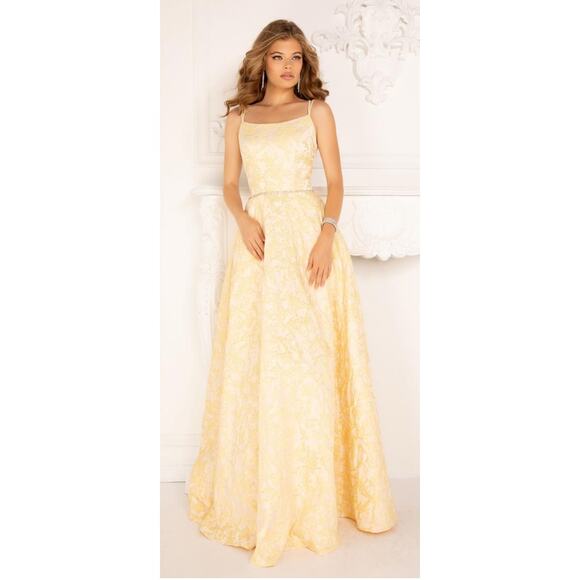 NWT Lucci Lu 1137, 6, Yellow Jacquard lace up Ballgown