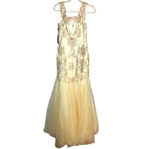 NWT Lucci Lu 28062, Off the Shoulder Champagne Trumpet Tulle Gown Beaded, 10