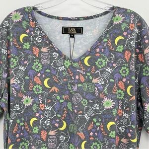NWT Lucky & Blessed Skeleton Cowboy Fall Print Knit T-Shirt Dress w/Pockets