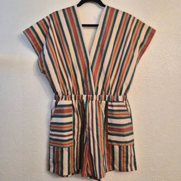 NWT Lucky & Blessed Striped Lightweight V-neck Romper: Sexy Resortwear Rasta
