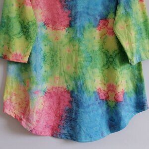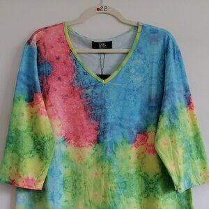 NWT Lucky & Blessed Women's Multicolor V Neck Tie Dye Blouse Top Size Large