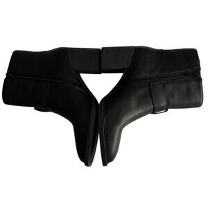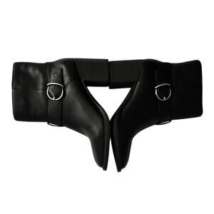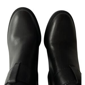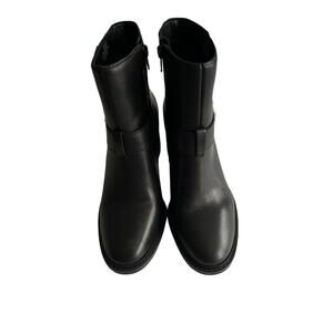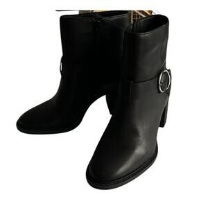 NWT Lucky Brand Block Heel Zipper Black Achelle Leather Bootie Siver Buckle-7.5M