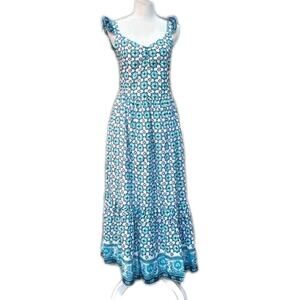 NWT Lucky Brand Blue Floral Ruffle Sleeveless Tiered Maxi Dress Womans Size XL
