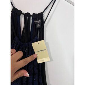 NWT Lucky Brand Blue/White Beaded Embellished Halter Blouse Top Size M