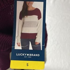 New with tags! Lucky Bran Color Block Sweater. Size Small. Burgundy, cream and gray. Crew neck sweater Ribbed collar, Sleeves and hem. 60% cotton, 40% acrylic