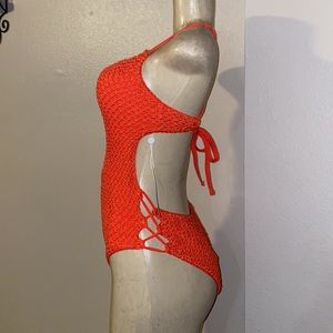 NWT Lucky Brand Crochet Swimsuit in Coral