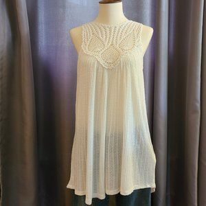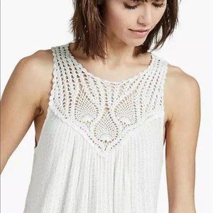 NWT Lucky Brand Crochet Yoke Tank, White, Small