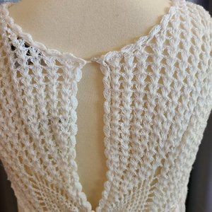This is a beautiful and lightweight top. It has beautiful crochet yoke detailing and a back keyhole.