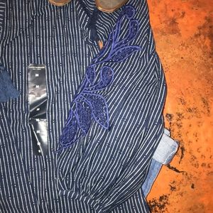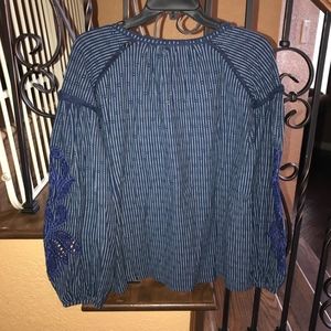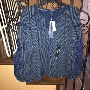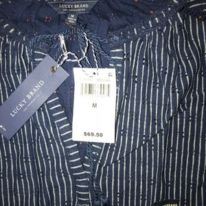 NWT Lucky Brand Cutout Stripe Peasant Top