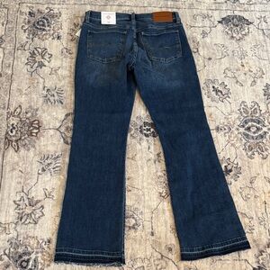 Stylish dark blue flare jeans. Comfortable fit. Perfect for casual wear.