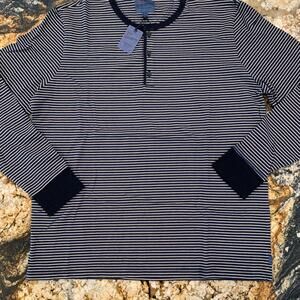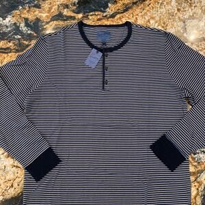 NEW WITH TAgS - RETAIL $60 - SIZE XXL - This Lucky Brand navy Striped Henley Tee is the perfect shirt for wear anywhere style. Featuring tiny navy and cream stripes, and a slight button neck. Button neck, Long sleeves, Fabric & Care - 100 % COTTON MACHINE WASH COLD WITH LIKE COLORS WASH INSIDE OUT DO NOT BLEACH TUMBLE DRY LOW COOL IRON IMPORTED