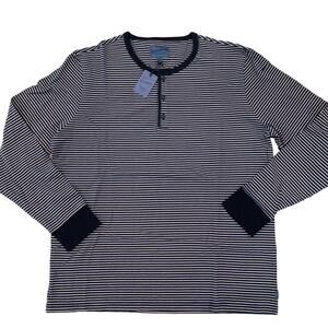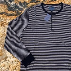NEW WITH TAgS - RETAIL $60 - SIZE XXL - This Lucky Brand navy Striped Henley Tee is the perfect shirt for wear anywhere style. Featuring tiny navy and cream stripes, and a slight button neck. Button neck, Long sleeves, Fabric & Care - 100 % COTTON MACHINE WASH COLD WITH LIKE COLORS WASH INSIDE OUT DO NOT BLEACH TUMBLE DRY LOW COOL IRON IMPORTED