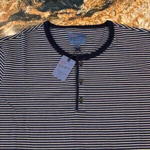 NWT - Lucky Brand Men's Navy and Cream Striped Henley Tee - SIZE XXL