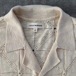 Lucky Brand men's short sleeve pointelle geometric pattern button up collared shirt. Men's size large.