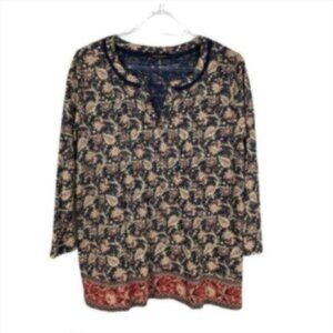 Lucky Brand Women's Navy/Rust Floral Print with Border Blouse