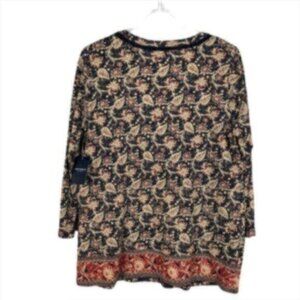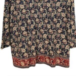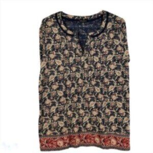 NWT Lucky Brand Navy/Rust Floral Print Bohemian Casual Blouse Medium