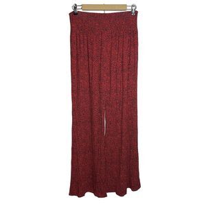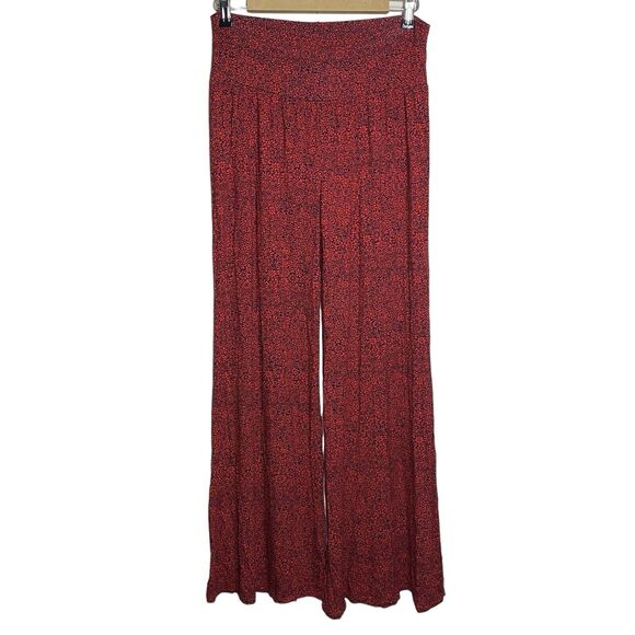 NWT Lucky Brand Pants Womens Medium Red Flare Pull On Floral Stretch Boho Flowy
