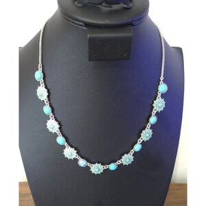 NWT Lucky Brand Silver-Tone Turquoise Flower Necklace With Adjustable Chain