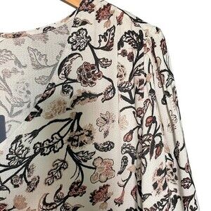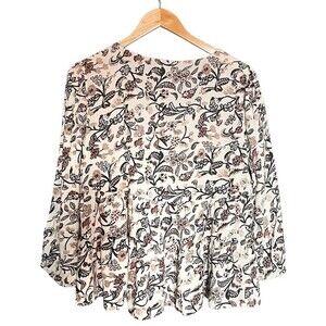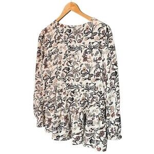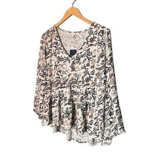 NWT Lucky Brand Top Floral Peasant Blouse Long Sleeved Peplum Cream Size Small