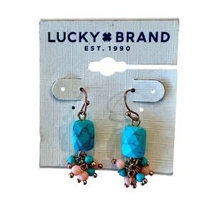 NWT Lucky Brand Turquoise & Rose Gold Drop Earrings