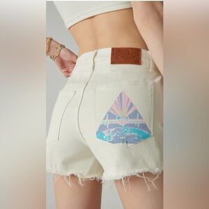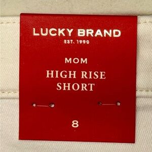 NWT Lucky Brand White Pink Floyd Frayed High Waist Denim Mom Shorts Size…