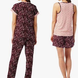 NWT Lucky Brand Women's 4 Piece Drawstring Pajama Set Size M Burgundy $85 2D224
