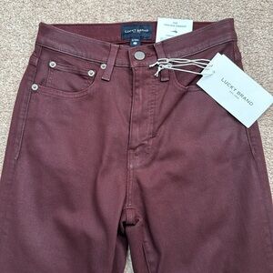 NWT Lucky Brand Zoe High Rise Straight Leg Coated Burgundy Jeans Size 26 Long. No Flaws. New With Tags!