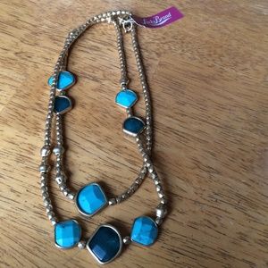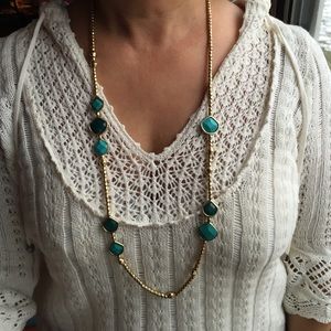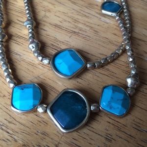 15Brand new with tags. Gold toned hardware with turquoise and green stones. Adjustable necklace. 34-1/2"