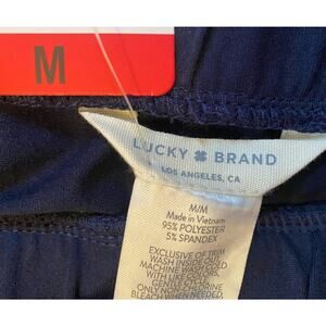 The product is a pair of NWT Lucky Soft Lounge Pants in a size medium, suitable for both men and women. These pants come in a blue color and feature pockets, making them comfortable and practical for lounging around the house. The Lucky Brand ensures a quality and stylish addition to your loungewear collection.