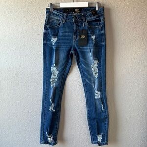 NWT Lucky and Blessed Mid Rise Ankle Distressed Skinny Jeans Size 6