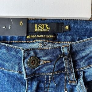 NWT Lucky and Blessed Mid Rise Distressed Ankle Skinny Jeans Size 6
